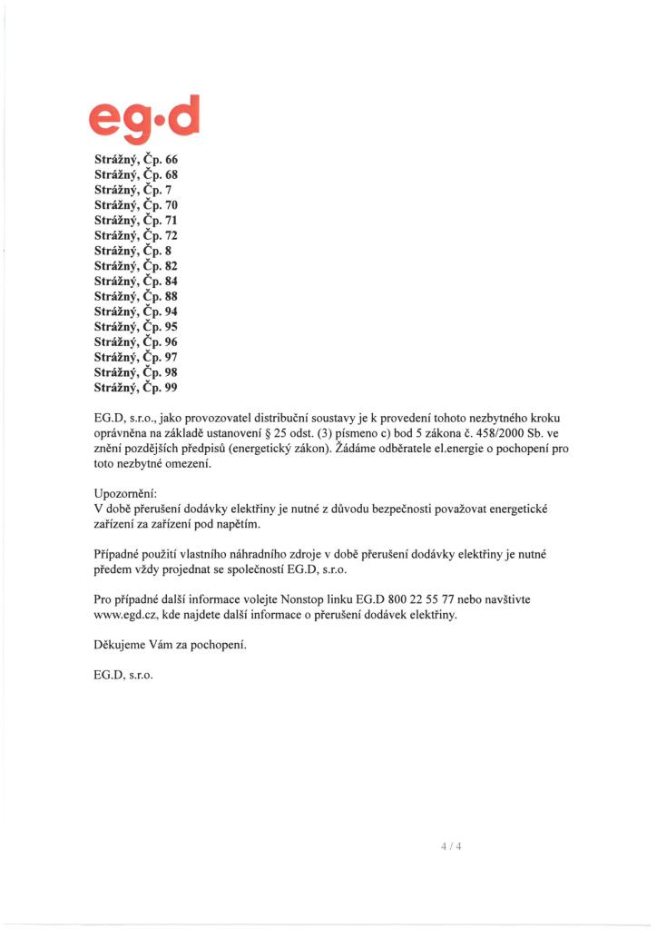 Přerušení dodávky elektrické energie